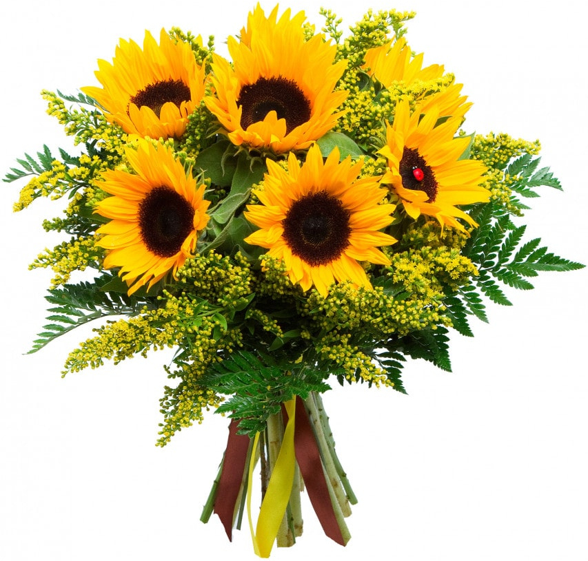 3 подсолнуха, зелень, лента5 подсолнухов, зелень, лента7 подсолнухов, зелень, лента